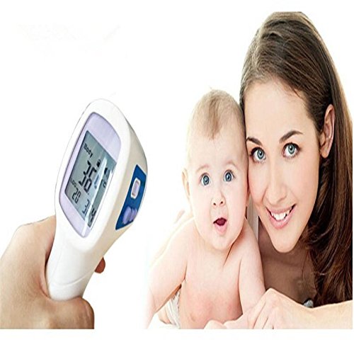 - 「瞬間測定」:反応時間は即時(0.5秒)で温度を読み出すことができる。小型で手持ち式、測定ボタンを押すと、対象の温度を測定する。