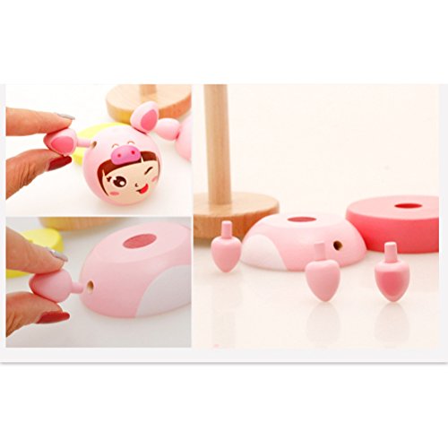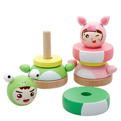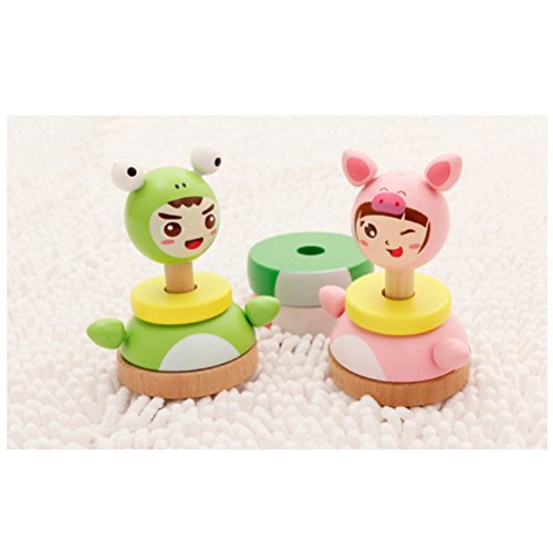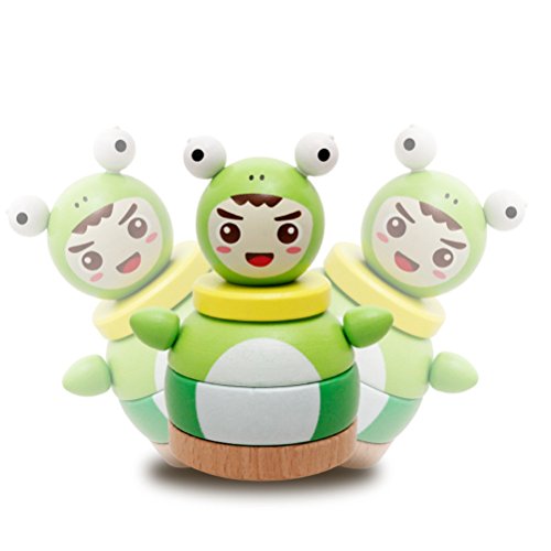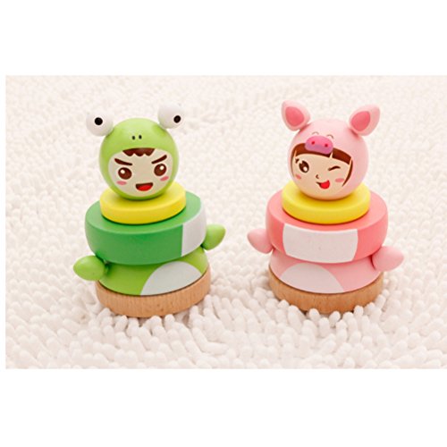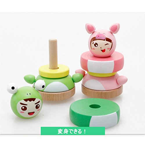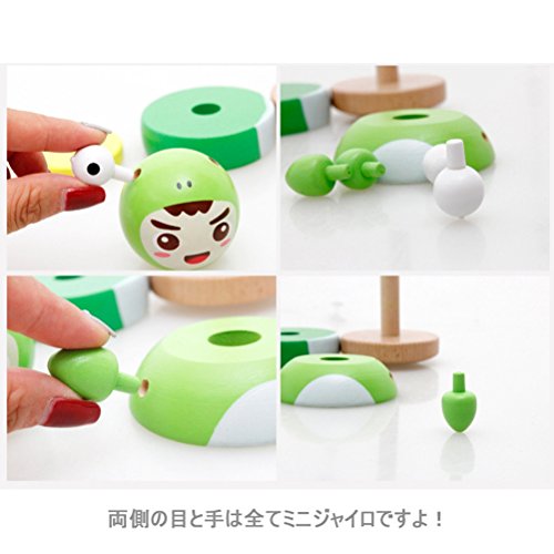 [ドリーマー] おもちゃ 木製玩具 お人形 2点セット 知育 棒さし ミニジャイロ 積み木 ブロック 不倒翁 蛙 豚 可愛い ピンク 緑 グリーン