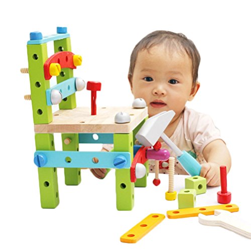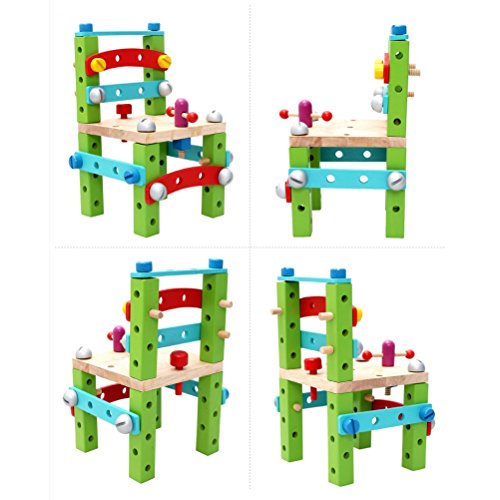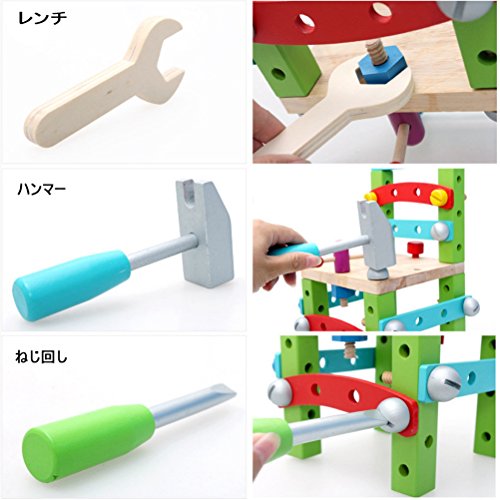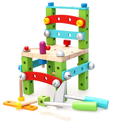 [ドリーマー] 木製おもちゃ 椅子 簡単に組み立て可能! 積み木 レンチ/ハンマー/ねじ回し工具付き ブロック 知育玩具 ベビー 赤ちゃん キッズ 育児