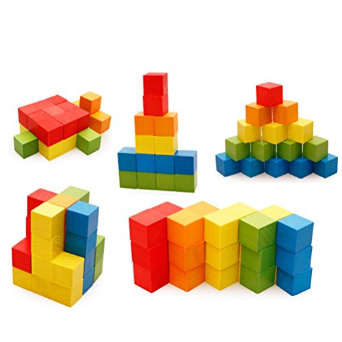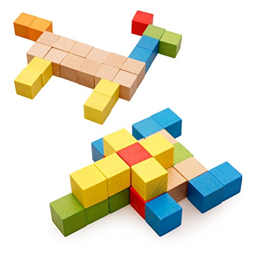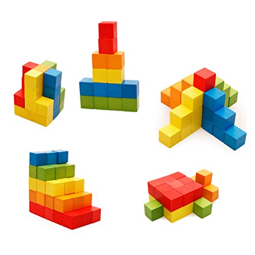 [ドリーマー] カラフル キューブ積み木 ブロック 天然木材でママも赤ちゃんも安心 知育玩具 おもちゃ ベビー 子供 キッズ用 立体パズル 幾何学認知 育児 幼児