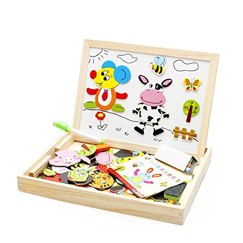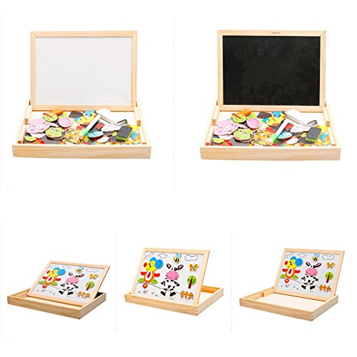 [ドリーマー] 知育玩具 お絵かきボード 積み木 磁石付き 磁気おもちゃ 黒板/ホワイトボード 両面 動物パーツ 3way 赤ちゃん早期開発 想像力 パズル 水彩筆/黒板拭き/説明書付き 天然木製