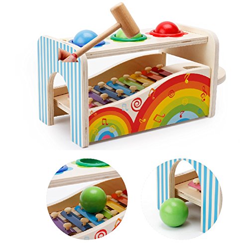 [ドリーマー] 槌で打つタイプおもちゃ 木琴 ボールスタンド 2点セット 知育玩具 楽器 バチ 木製 音階音律認知 色認知 早期開発 出産祝い お誕生日ギフト カラフル 可愛い 無毒無害