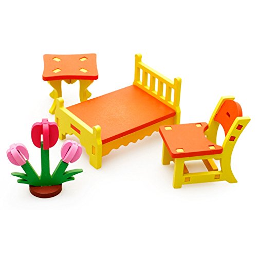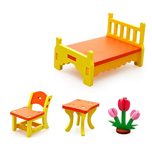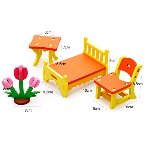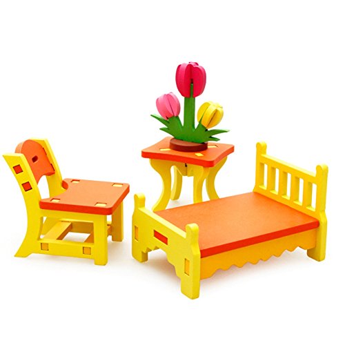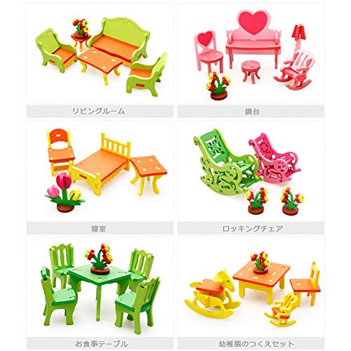[ドリーマー] 積み木 3Dモデル 立体パズル ビー玉 木製 知育玩具 女の子 男の子 ベビー 赤ちゃん 日常生活の組み立て 家具 ドレッサー つくえ デスク 椅子 ロッキングチェア カラフル 可愛い