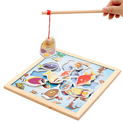 [ドリーマー] 釣り遊び 魚釣り フィッシングゲーム 木製 マグネット 磁石 知育玩具 おもちゃ 釣り竿付き パズル 女の子 男の子 赤ちゃん