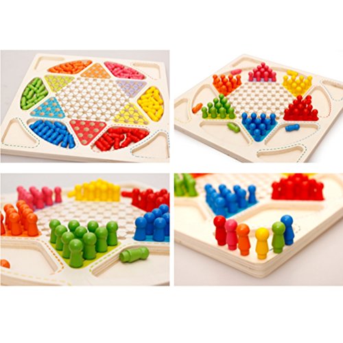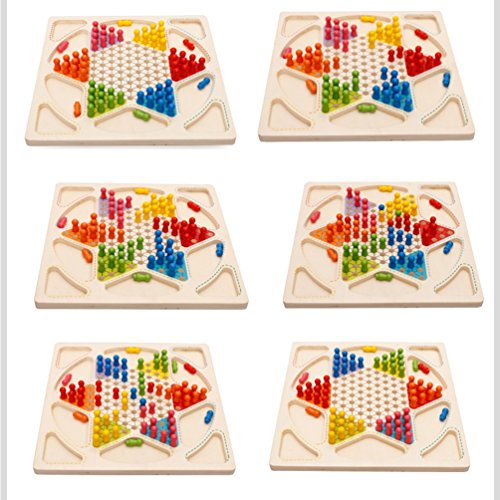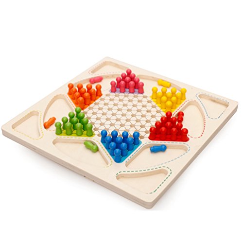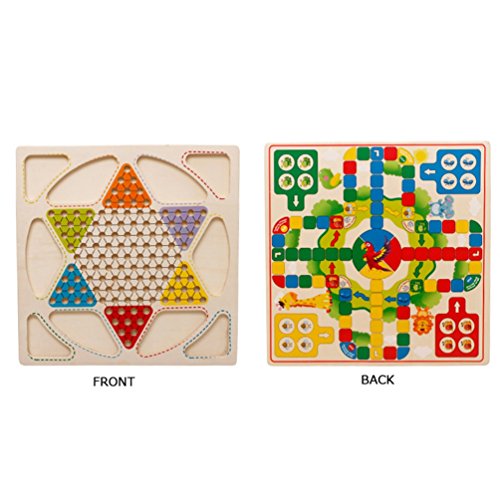 [ドリーマー] 2イン1! チェッカーズゲーム+フライングチェス リバーシブル 両面使用可 ダイス付き 木製おもちゃ 知育玩具 チャイニーズダイヤモンド 赤ちゃん 子供 6色 カラフル