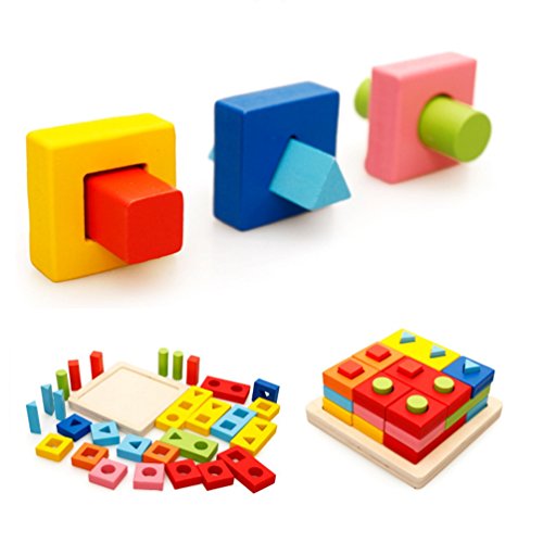 [ドリーマー] 棒さしおもちゃ 木製 型はめ 形合わせ 幾何学認知 知育玩具 学習 マッチングゲーム 積み木 ブロック 立体パズル カラフル 可愛い 無毒無害
