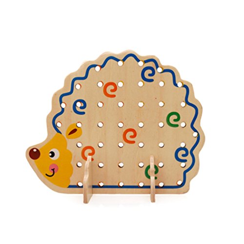 - 可愛いハリネズミの木製のひも通しおもちゃです。