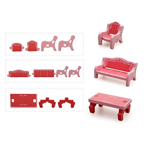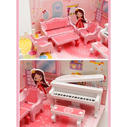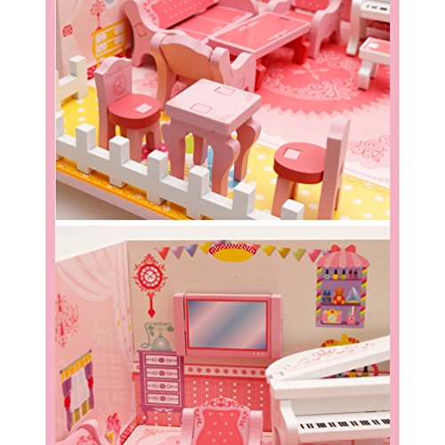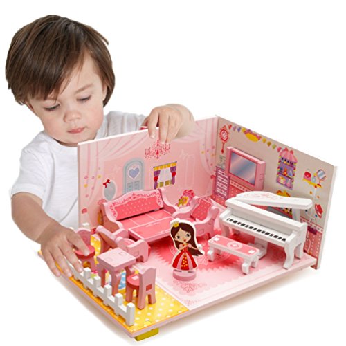[ドリーマー] DIYハウス リビングルーム 立体パズル 積み木 組み立て おままごと 知育玩具 おもちゃ 木製 可愛い ガールズ ベビー ピンク