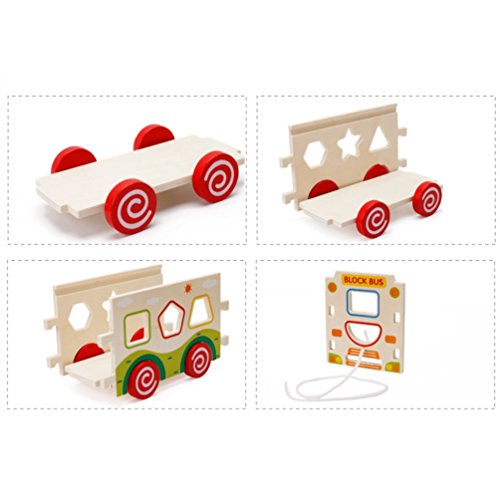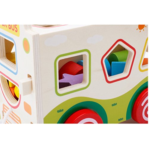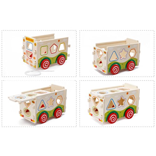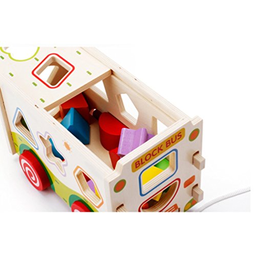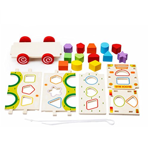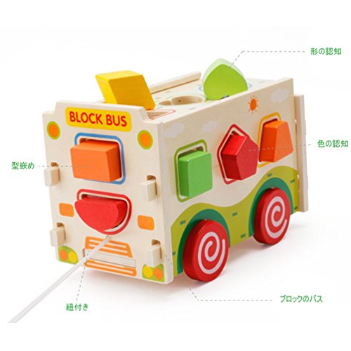 [ドリーマー] ブロックのバス 積み木ボックス 型はめ 形合わせ 幾何学認知 形のマッチング 立体パズル 可愛い カラフル 紐付き
