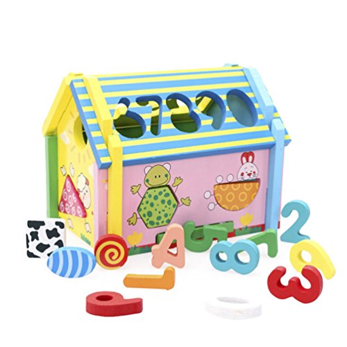 [ドリーマー] 木製ハウス 積み木 型はめ 形合わせ 立体パズル 智慧ハウス 組み立て 早期開発 知育玩具 数字 動物 赤ちゃん ベビー 子供 カラフル 可愛い