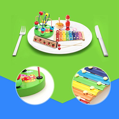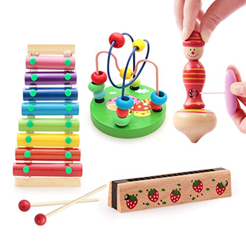 [ドリーマー] 知育玩具 4点セット 木製 木琴 ハーモニカ ビーズコースター ジャイロ 毛虫 棒さしおもちゃ 積み木 赤ちゃん キッズ 子供 早期開発 幼児 カラフル 女の子 男の子 プレゼント ギフト お祝い