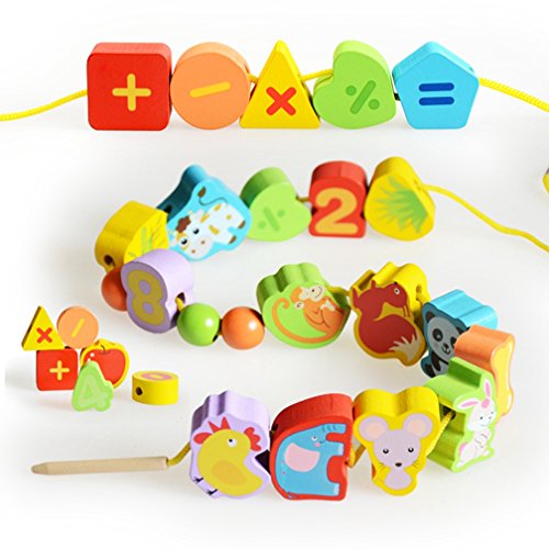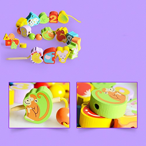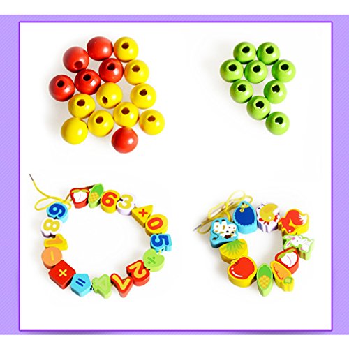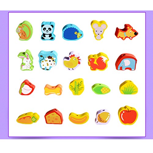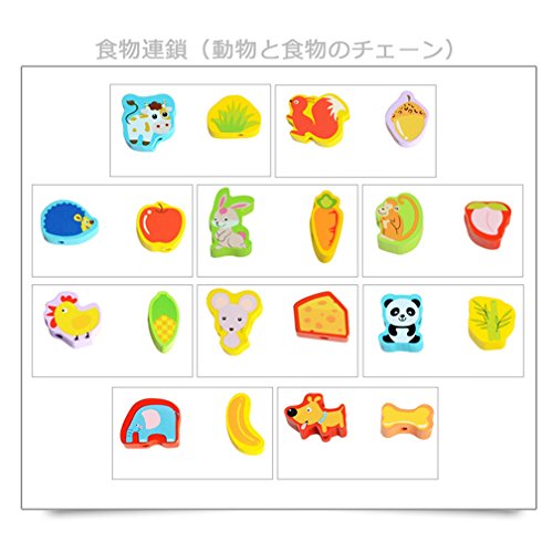 [ドリーマー] ビーズ 紐通し ビー玉 知育玩具 おもちゃ 木製 幼児 子供 キッズ ブロック 積み木 フルーツ 動物 野菜 カラフル