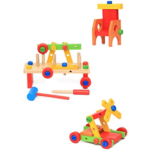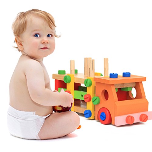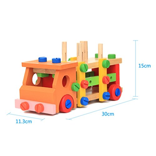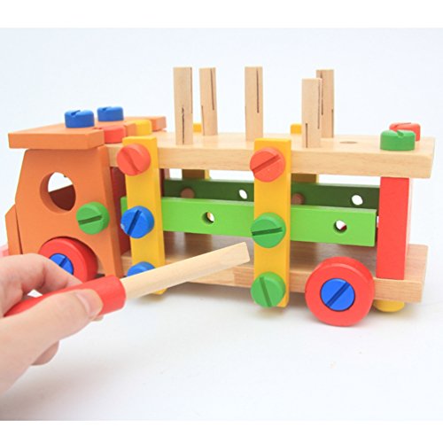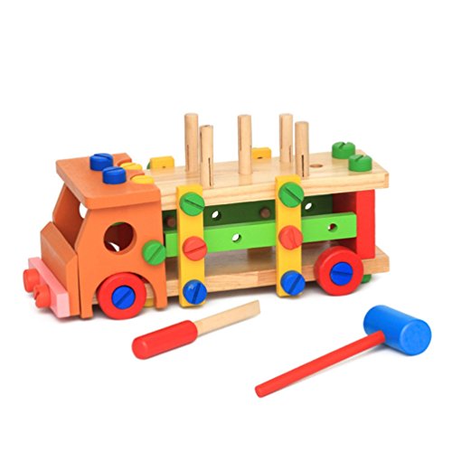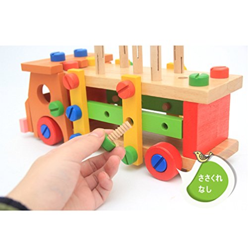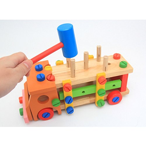 [ドリーマー] 知育玩具 木製 工具の車 工具箱 大工さん ねじ カー おもちゃ 積み木 トラック 子供 キッズ ベビー カラフル 組み立て 槌付き