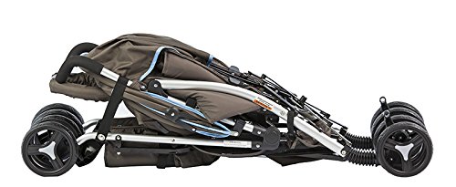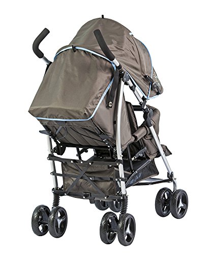Rear seat has a 3 position recline and 5 point safety harness;Front seat offers an adjustable foot rest, 1 position seat recline and 5 point safety harness;Canopy with peek a boo window;Large storage basket;Folds flat for storage