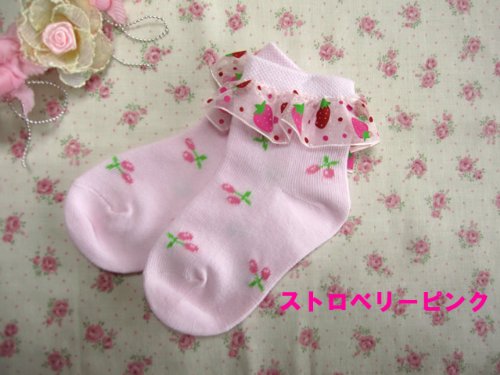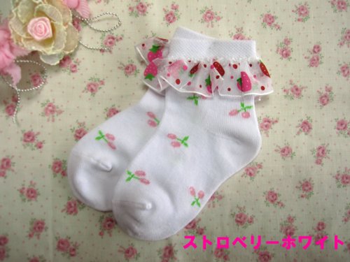子供ソックス レース 子供 フォーマル上品 キッズ ハート いちごソックス (2-4歳, ストロベリーホワイト)