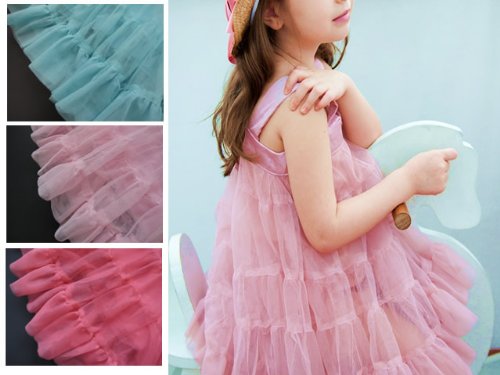 - シンプルなふんわりチュールのティアードドレスワンピースです。