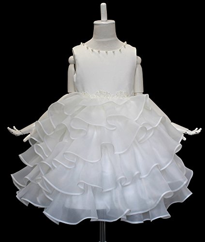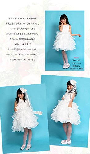 ドリーム企画 子供ドレス 発表会d-0056 ラセン状シフォン ホワイトドレス パニエ内蔵 (表示サイズ100cm 参考サイズ80-90cm 胸囲54cm 胴囲52cm 総丈50cm)