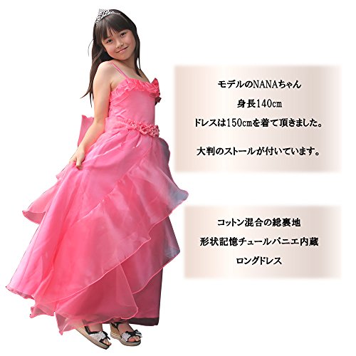 子供ドレス 発表会 パニエ内蔵 子供ドレスロング 上質なオーガンジー素材 ハイウエストドレス