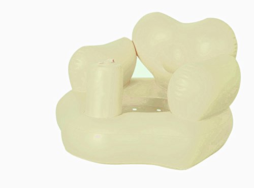 座面が低いため安定性がよく、前倒れしにくい。 一人用の幼児用イスです。赤ちゃんの足がエアーポンプをはさむように左右から出ている状態でご使用ください。 転倒などにより溺れたりしますので、浴槽やプールなどの水上では絶対に使用しないでください。 使用後は、きれいに洗って風通しのよい場所で乾かしてください。 空気を抜くときは、空気栓を指で押し、本体をやさしく押しながら空気を抜きます。