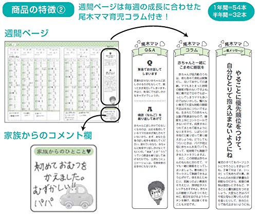 ●【商品説明】●「ナカバヤシ 尾木ママのキラキラファミリーシリーズ 尾木ママ育児ダイアリー 1年間タイプ HBR-A503B ブルー」は、子育てのコツなどを学びながら実践できる育児日記(1年間)です。●尾木ママの直筆コラム掲載。●週間ページは3種の尾木ママ育児コラム付き。●様々なコンテンツで赤ちゃんの記録を残せます。●子育ての楽しさを読んで学習、書いて実践し、我が子と一緒に自分の成長を実感できます。●機能付きカバー採用(ファスナーポケット、ペンボルダー、カードポケット×3、フラットポケット)。●尾木直樹氏監修。●【ご注意】●コピー機やレーザープリンターで出力した印刷物を入れると、トナー(インキ)がカバーに付着します。●また、それ以外の印刷物でも、長期間同じ用紙を入れたままにしたり高温の場所に放置したりすると、トナーがカバーに付着することがあります。●母子健康手帳は地域ごとにサイズが異なります。●サイズによってはファスナーポケットに入らない場合がございます。●【製品仕様】●本体サイズ:タテ217mm×ヨコ168mm×背幅12mm●本体重量:330g●PVC...