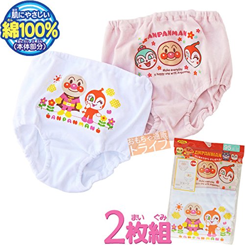 アンパンマンのかわいい女児用ショーツです。ドキンちゃんとコキンちゃんがかわいいピンクと白の2絵柄組です。シンプルでボトムにひびかない薄手のショーツです。取り替え穴、お名前欄付。