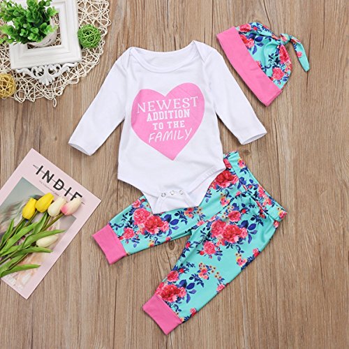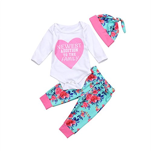 ベビー ベビー服 春秋服 ロングス 英字 女の子 3セット ロンパース ロングパンツ 帽子 クリスマス (90)