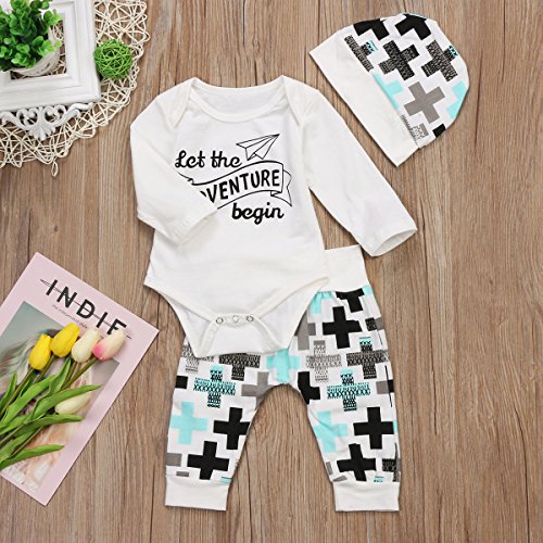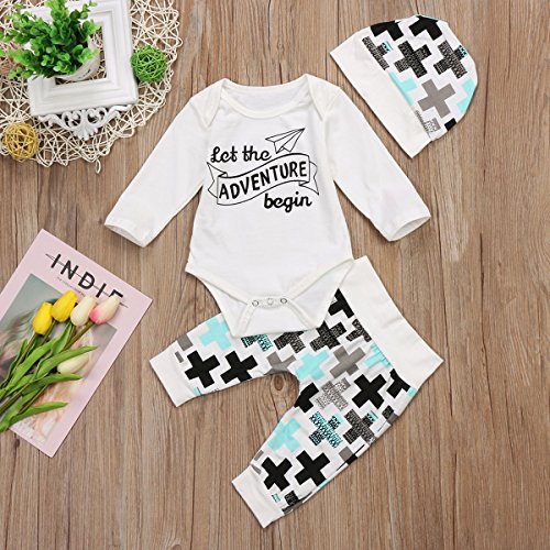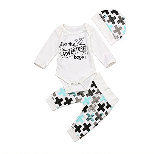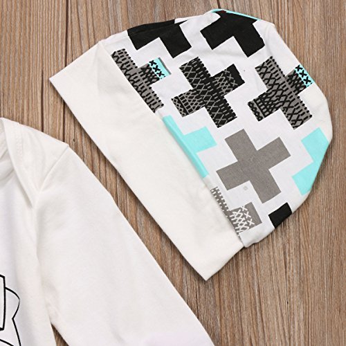 ベビー ベビー服 春秋服 ロングス 英字 男女兼用 黒白 チェック柄 3セット ロンパース ロングパンツ 帽子 クリスマス (90)