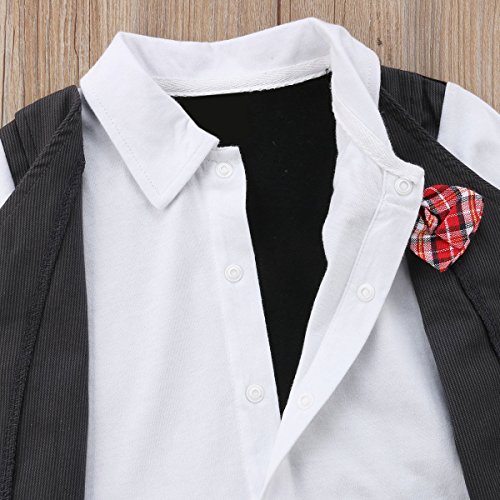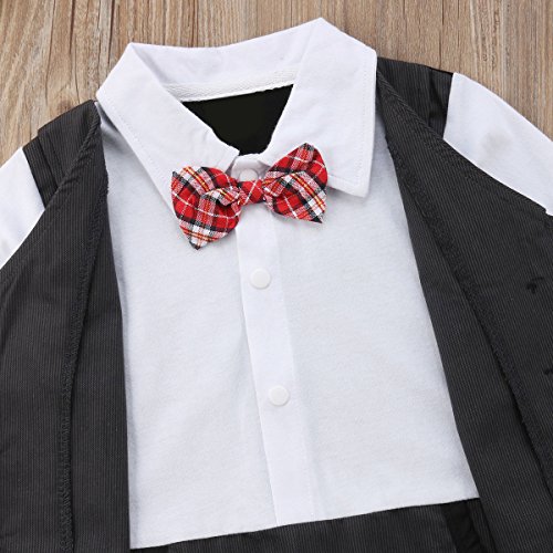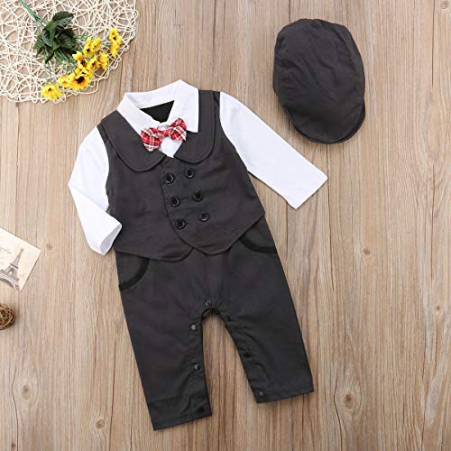 ベビーフォーマル ロンパース長袖 帽子付き 結婚式服 ネクタイ ベスト 男の子 子供服 七五三 結婚式 発表会 (9-12ヶ月)