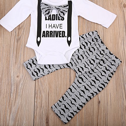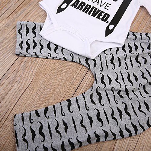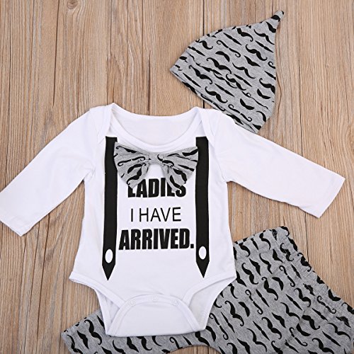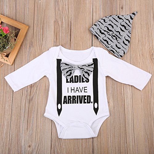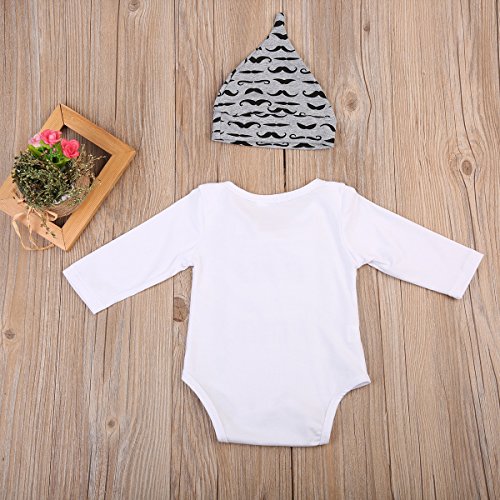 Baby 赤ちゃん ロンパース 100% 肌着 綿 長袖 cartoon 髭 プリント 長ズボン春秋着 帽子 3点セット (0-3M)