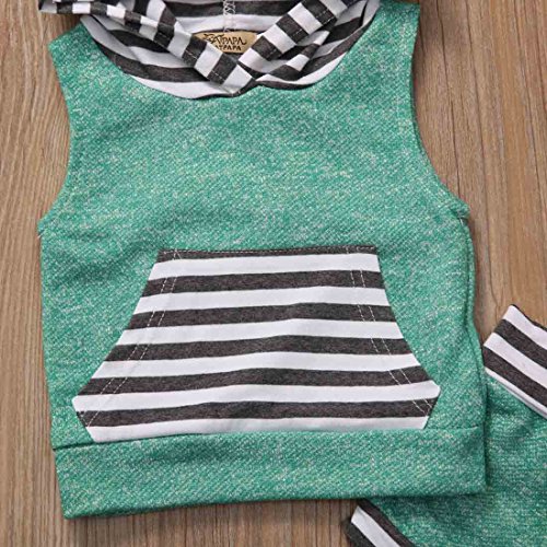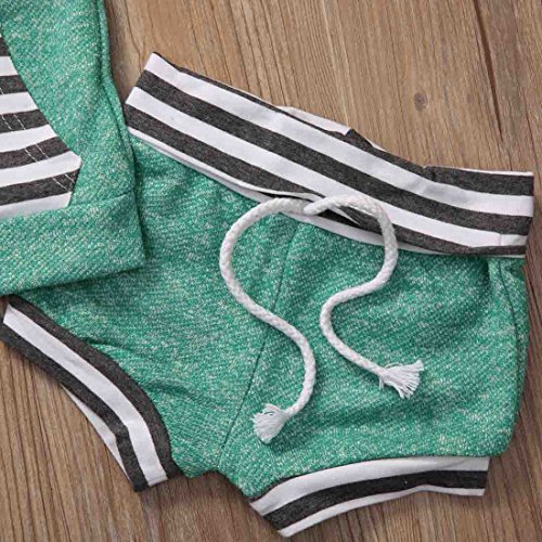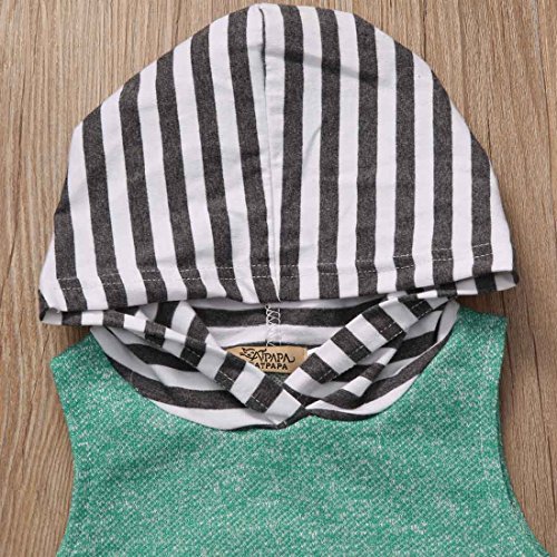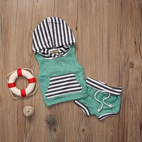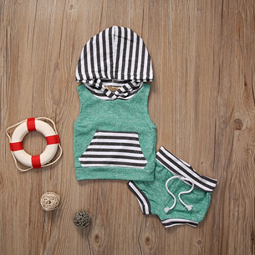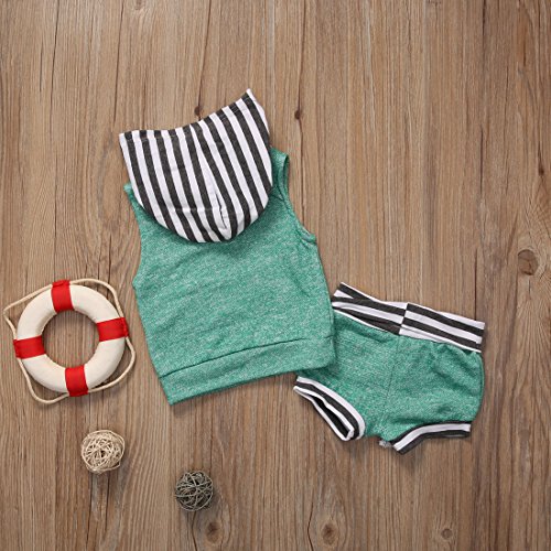 ベビー服 男の子 女の子 绿色 ストライプ フード付き 袖なし の 上着 +とりつけやすい 短 いパンツ 上下 2点セット (1-2Years)