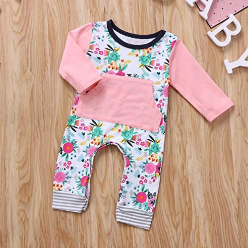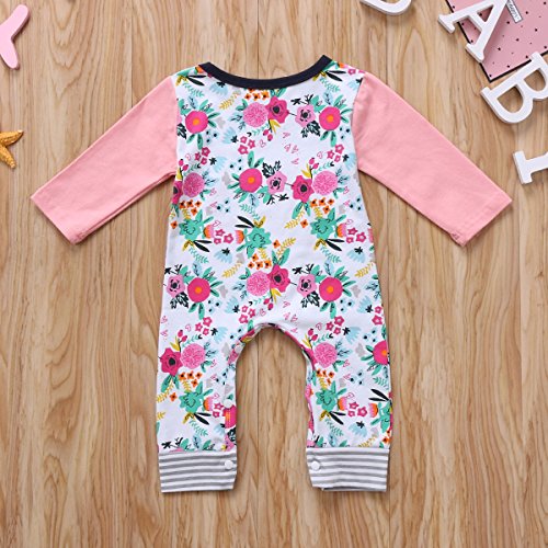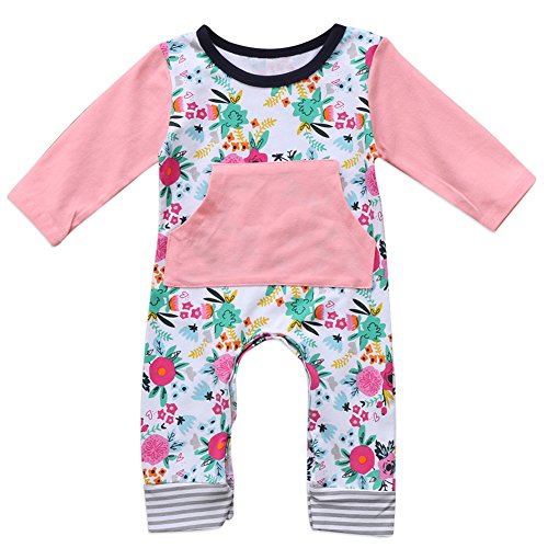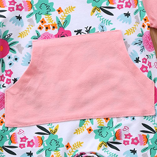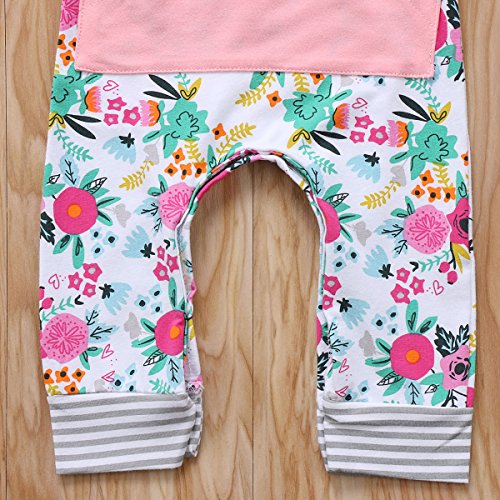 ロンパース 子供 ベビー服 春秋服 ロングス 花柄 ピンク 女の子 上下セット ロンパース ロングパンツ(80)