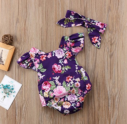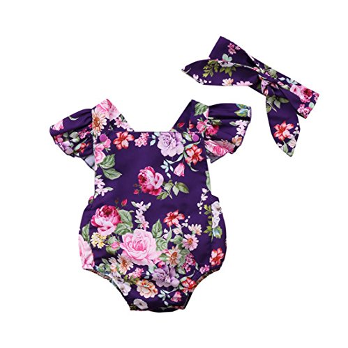 女の子 ノースリーブ 花柄ロンパース ワンピース リボン 付き 2点ゼット ホワイト 夏 (18-24ヶ月)