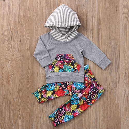 新生児服 女の子 男の子 ユニセックス 赤ちゃん ガールズ ボーイズ フード付き長袖グレートップス 花柄パンツ かわいい洋式秋服 秋 冬 コスチューム衣装セット 遊び 記念 撮影 誕生日 バースデー セレモニー ルーム (0-3M)