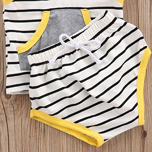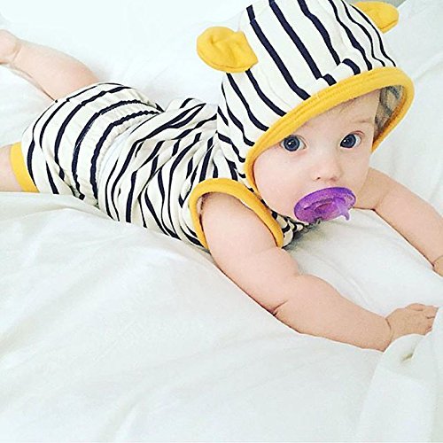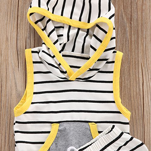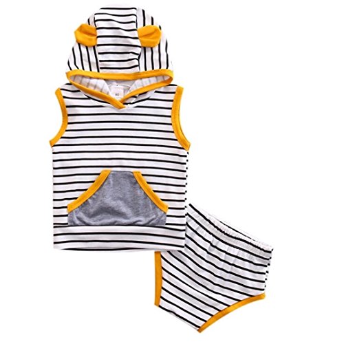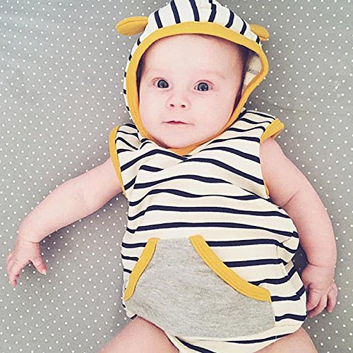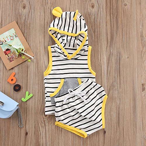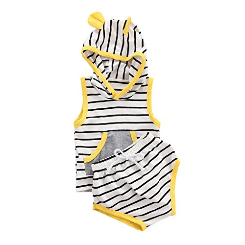 赤ちゃん ストライプ フード 袖なしの 上着 + ストライプ 短いパンツ 80(3-6M)