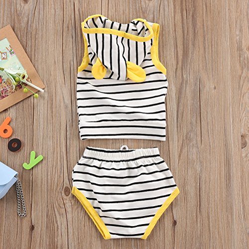 Baby 赤ちゃん ストライプ フード 袖なしの上着 + ストライプ 短いパンツ 90(6-12M)