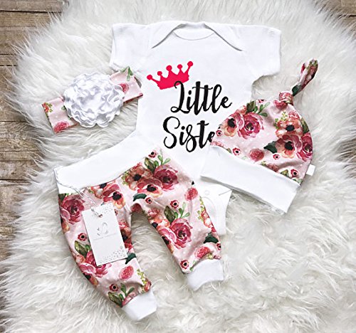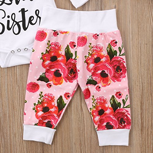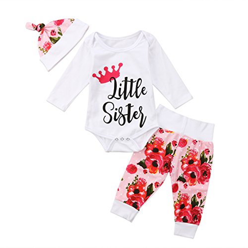 ベビー服 春秋服 ロングス 女の子 花柄 3セット ロンパース ロングパンツ帽子付き (70)