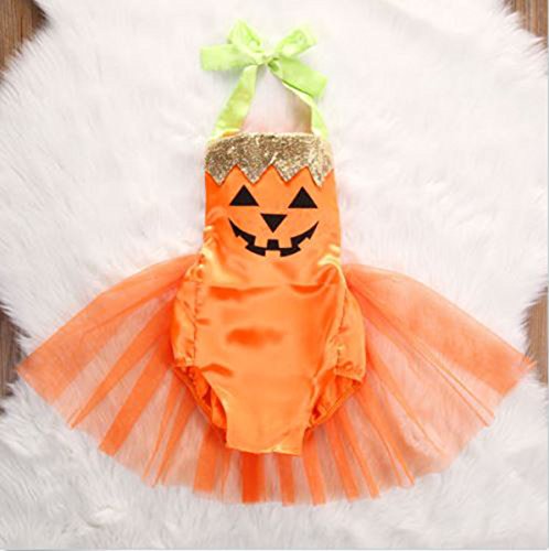 ベイビーガールズ ハロウィンコ 可愛い 魔女風ドレス, スチューム トゥト パンプキン ホルター ロンパー ジャンプスーツ (18-24ヶ月)