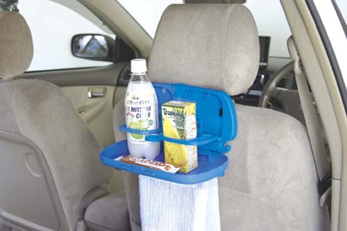 後部座席ってなにかと不便じゃないですか?ジュースも置けてタオルも掛けられる便利なトレイ。