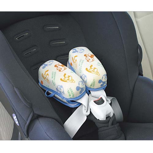 かわいいベビーミッキーのベルトカバーです。ループと丸いボンボンがついており、別売のブランケットやネックピローとの組み合わせも可能です。洗濯OK。
