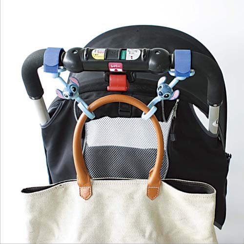 ベビーカーに取り付けて、バッグなどを下げるのにとっても便利です。人気のスティッチをモチーフにしたデザインでフリーアングル回転部はベビーカーのハンドルの角度にフィットし、フックを常に下向きでご使用いただけます。直径2~4cmのハンドルに対応。最大静止加重3kg。2個セット。