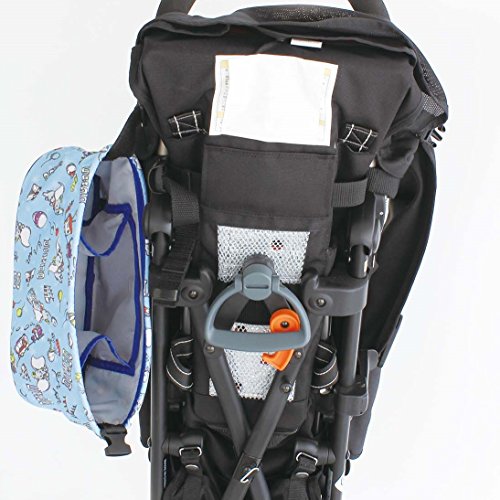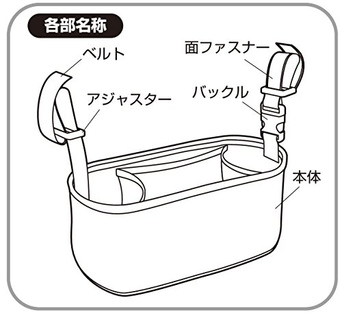 ●ベビーカーのグリップにベルトと面ファスナーで簡単取り付け、片側がバックルではずれるので、ベビーカーの折りたたみの際に便利です。