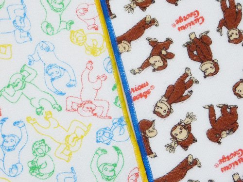 キュリアスジョージのミニハンカチ。 2枚入りのセットです。 カラフルなジョージのイラスト入り。