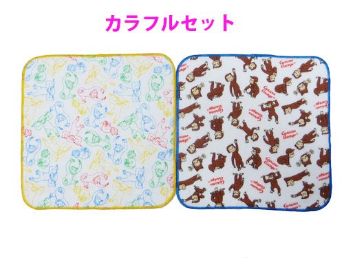 キュリアスジョージのミニハンカチ。 2枚入りのセットです。 カラフルなジョージのイラスト入り。