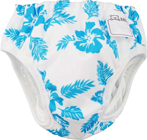 水遊び用パンツ 南国風ハイビスカス柄 ベビースイミング 水あそびパンツ ブリーフ型 ゴム インナー 保育所 保育園 水遊びパンツ (説明) 保育園・幼稚園用の水着として これからの水遊びの季節におススメです。 ベビー用おむつカバーと同じ、 肌に優しい防水素材をしよういたしております。 洗えば何度でもご利用頂けます。 使い捨ての紙おむつと違ってみずを吸って 膨らんだり重くなったりしません。 成形おむつパッドを併用すれば 防漏パンツとしておむつカバーとしてもお使いになれます。