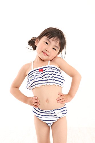 ビキニセット 女の子 スイミングパンツ (90cm, マリンボーダービキニ)