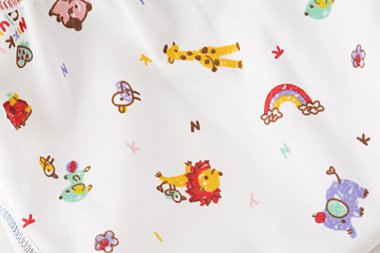 ポップでかわいいアニマルプリントのおむつカバー♪ 【内ベルトタイプ】活発に動き始めた赤ちゃんは、自分自身でベルトをはずしちゃう可能性大!手足バタバタし始めた赤ちゃんにオススメです。 【後ろゴム入り】赤ちゃんの体型にフィットするように後ろ腰部分にゴムを入れてます。また、活発に動き始めた赤ちゃんのねんね時のおしっこの背中からのつたいモレを防ぎます。 【横モレを防ぐ立体構造】股ギャザーで横モレを防ぎます!モレ防止の為にも布おむつがはみ出さないようにしっかり布を当ててください。■素材 ポリエステル100%