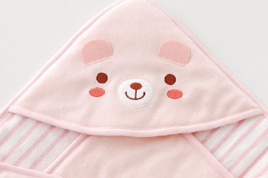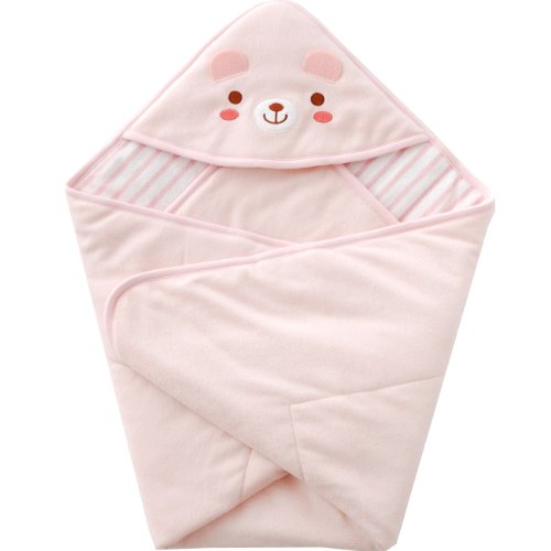 - キュートなクマちゃんお顔が付いた中綿入りのおくるみ。男の子ベビーでもおくるみはママの大好きなピンクでもイイよね♪