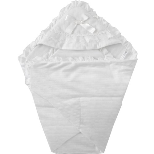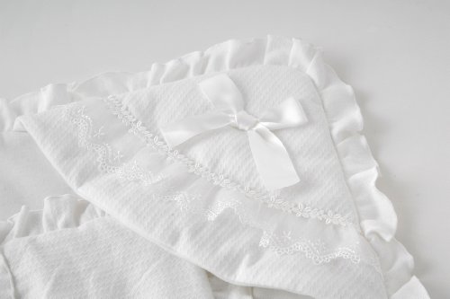 ニシキ ピュアホワイト サテンリボン刺繍レース付きおくるみ(アフガン)80cm×80cm ホワイト P9170W