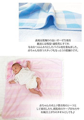 - 表面は吸水性、速乾性に優れたガーゼ素材。裏面はふんわりパイル生地を重ねた作りで赤ちゃんをふんわり包んでくれます。