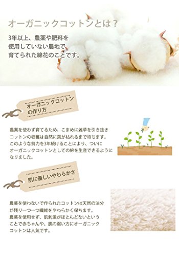 - オーガニックコットンとは?→3年以上農薬や肥料を使用していない農地で育てられた綿花のことです。